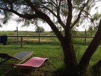 Este hotel con spa se encuentra en un parque regional, a 15 minutos a pie de Parque natural regional de Camargue y Parque ornitológico de Pont de Gau. Iglesia de Santa María y Estadio de Saintes-Maries-de-la-Mer también se encuentran a 2 km (1 mi).