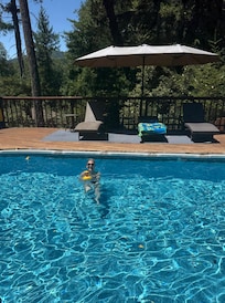 Cabin near the river with private pool, wood-burning fireplace & patio