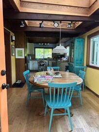 Vintage Cabin with enclosed yard, well stocked Kitchen, Spa and Huge Sunny Deck.