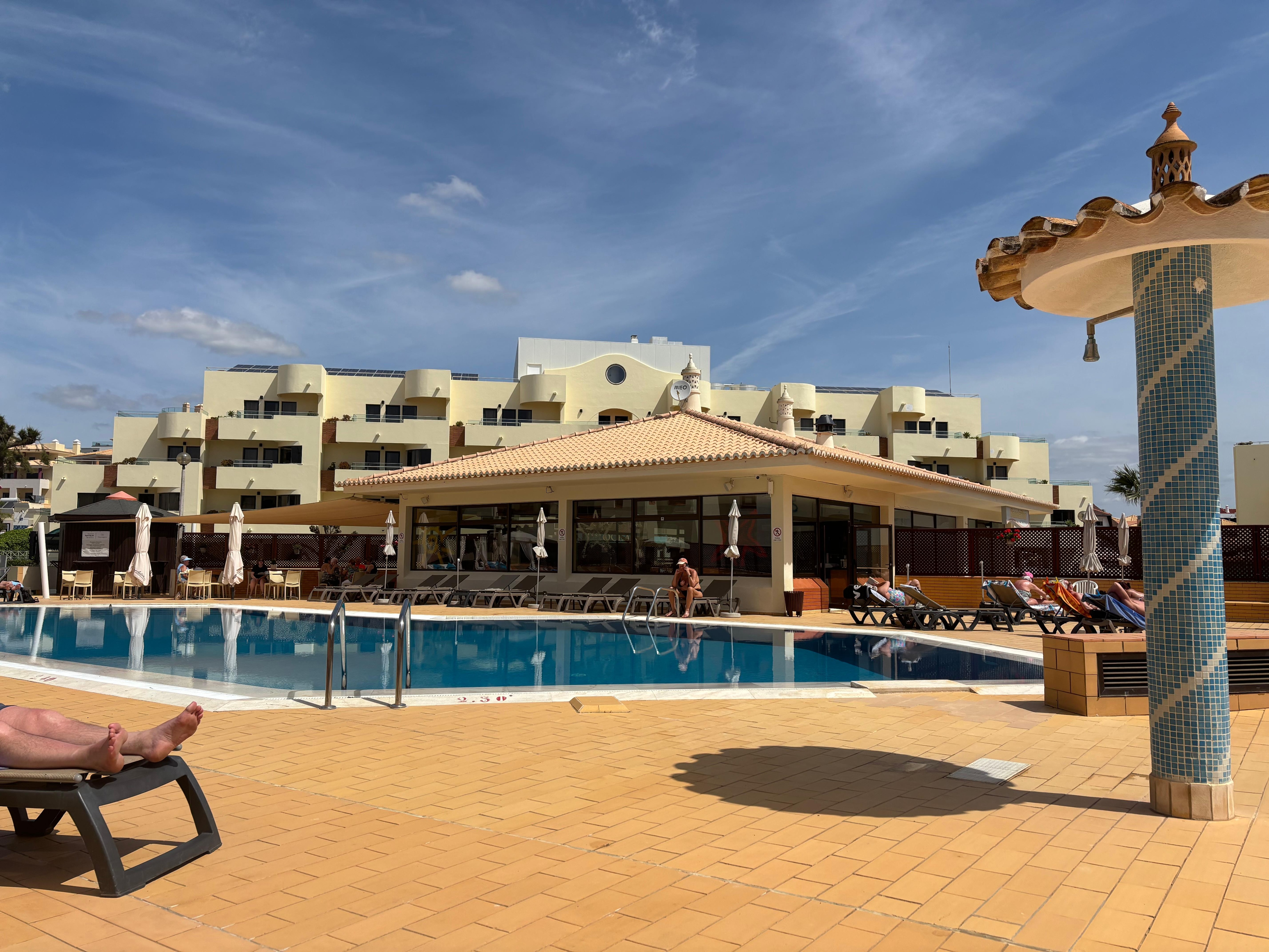 This is a great complex, clean,spacious apartments, lovely indoor & outdoor pools, close to all amenities, beach 5-min walk away, as are the buses & shops. Staff are all fantastic, always friendly & nothing is too much trouble. Olhos de Água is a lovely part of Portugal, safe & no trouble.