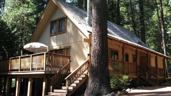Paraíso de los niños (¡Cualquiera que sea tu edad!) Esta casa tiene 2 dormitorios más un loft partido y 2 baños. Ambas habitaciones están en la planta baja, cada una con cama de matrimonio. El piso de arriba del loft dividido tiene 2 gemelos y una cama doble en el área de la habitación trasera. En la parte delantera hay una mesa de billar, una mesa de futbolín, un tablero de dardos y un televisor, una cama doble y una individual. Gran sala también tiene una pantalla plana de 42 ". Home ofrece TV por cable / DVD / VCR, una gran biblioteca de películas en DVD / VCR, computadora con acceso inalámbrico a Internet de alta velocidad, acceso gratuito a teléfonos locales, cubierta grande con una barbacoa de carbón (los huéspedes deben traer su propio carbón). Yard ofrece una excelente área de juegos para niños de todas las edades con tirolesa, columpio, fortín / cubierta de árboles, pozo de herradura y hamacas. Puede dormir 12 - alfombrillas adicionales disponibles. Una cuna portátil de bebé disponible bajo petición. Perros OK con aprobación previa. Se puede aplicar una tarifa por mascota de $ 25. No Fumar. Estancia mínima de 2 noches / 3 noches min. durante los períodos de vacaciones. Membresía de verano de Big Trees Recreation (se aplican tarifas de invitados) Consulte las instalaciones y actividades en http: // bigtreesvillage. org / centro de recreaci��n /.
