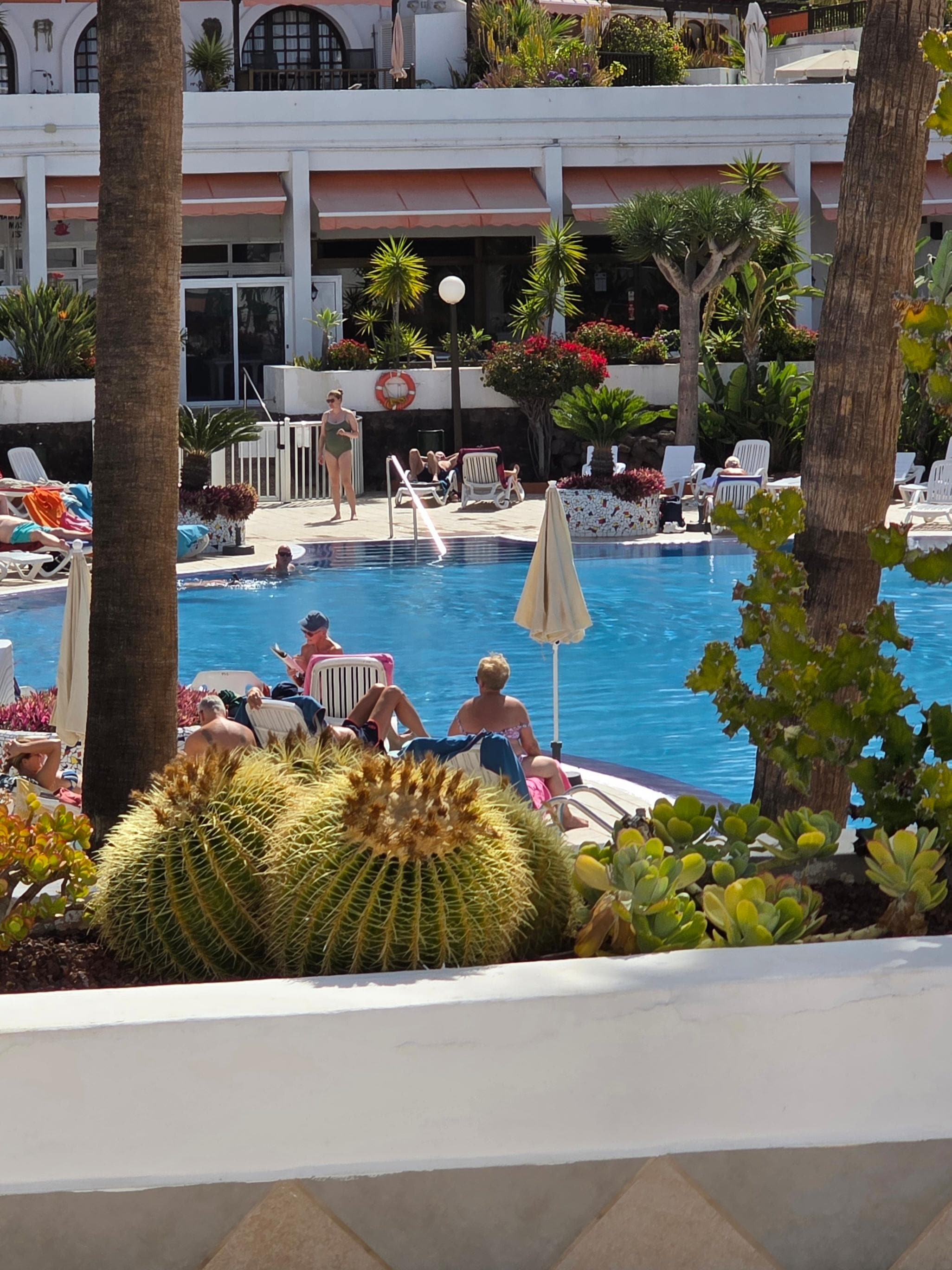 El alojamiento es grande pero con un deficiente aprovechamiento del espacio, decorado con un pésimo gusto, antiguo y lleno de jarrones, plantas artificiales, jarrones y demás elementos decorativos que horrorizan. No está publicado que la comunidad cobra 2,5 euros por hamaca para pasar un rato agradable en la piscina que cierra a las 19:00 horas, que en verano aún te apetece disfrutar de estas instalaciones. No engañaron. La ropa de cama antigua y horrible, las toallas son tan viejas y están tan usadas que huelen mal desde que te secas una vez. La supuesta cama de matrimonio que publicitan no es tal, son dos cañas individuales unidas y los colchones son incómodos y viejos. Las terrazas mal cuidadas y el mobiliario de las mismas, decrépito. En definitiva, muy lamentable la estancia, nada recomendable, decadente y no correspondiente a lo que se paga por el alojamiento. Le doy un menos cien de puntuación.