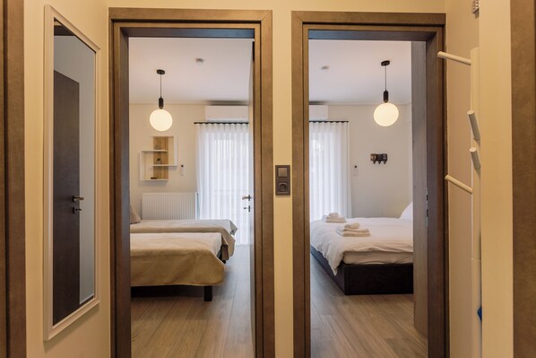 Todas las habitaciones de Bright 2 Bedroom Apartment Helios by Philoxenia tienen amenidades que incluyen aire acondicionado, además de algunos detalles adicionales, como wifi gratis y silla de escritorio.