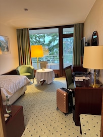 Je n'ai encore jamais été dans un hôtel aussi désuet, démodé, figé dans le temps. J'avais l'impression d'être dans un épisode de Derrick dans les années 80. Tout est vieux. Que ce soit les couloirs, la chambre, l'espace sauna, la piscine ... Ca sent le renfermé et le gris aussi.