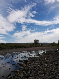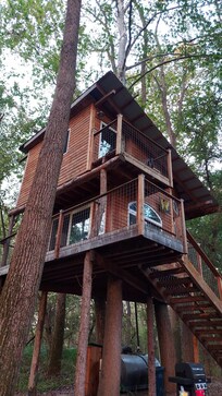 We had a great time staying here as a family of 4. The kids loved the bunk beds and the cozy play corner up in the loft. So much natural lighting! I loved how wide the door and some windows were for letting in fresh air. Being close to the river was a nice touch! We found some really neat rocks and enjoyed the walks. We also enjoyed the fire pit and sunsets in the field. We cooked our meals in the treehouse, and ate down at the picnic table. I almost packed a tray - regretted not after many trips up and down - one thing to consider is the fridge is outside, under the treehouse, which was fine once we finally remembered! we only stayed two nights and brought disposable plates/silverware, so I can't speak for the water as we didn't use it to shower or wash dishes. The treehouse did some creaking if there was a breeze, which is perfectly normal considering it's up off the ground and built in the trees. A sound machine was very helpful at night. It seemed like it only creaked when it was closed up, when the door and windows were open it was fine. The owner was very friendly, helpful, and responsive. We would stay there again!