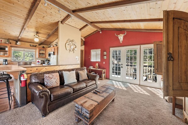 Esta cabaña para no fumadores cuenta con lavandería en las instalaciones y un área con asador. Esta cabaña dispone de 2 habitaciones, y tiene wifi gratis y patio privado. Los huéspedes podrán disfrutar de chimenea y otras comodidades, que incluyen cocina con refrigerador y horno. Se incluye un servicio de limpieza limitado.