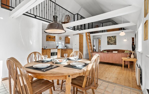 Esta acogedora casa adosada le da la bienvenida con una galería abierta y un ambiente luminoso y acogedor. El interior de buen gusto le ofrece a usted y a su familia un hogar lejos de casa donde pueden cocinar, comer, jugar o simplemente relajarse juntos. La terraza privada invita a relajarse, mientras que el amplio patio común ofrece la oportunidad de charlar con los huéspedes de las casas de vacaciones vecinas. El amplio jardín es un paraíso para los niños, que pueden jugar y corretear a sus anchas.