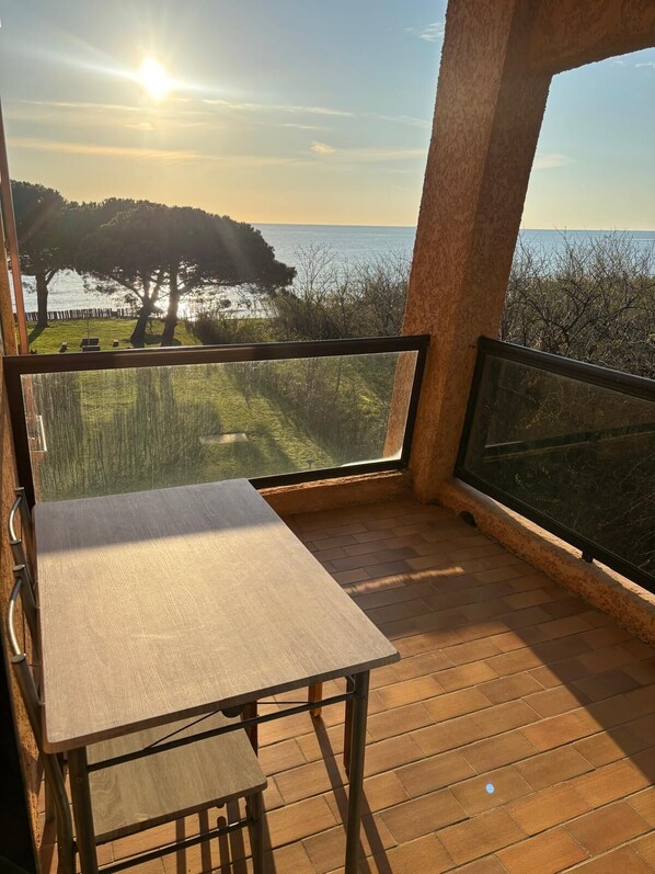 Studio with sea and mountain views. Just 2 minutes' walk from the beach and shops.