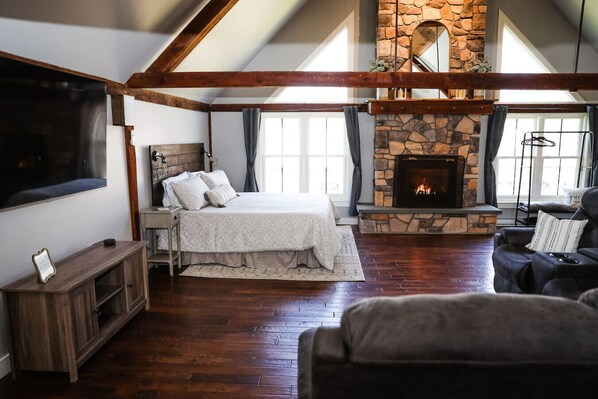 The atmosphere is fantastic; big fireplace, authentic wooden beams, comfortable recliner couch with “man cave” TV, and king size bed among other amenities in the loft. It is located in a residential neighborhood close to town. Nadine and Tim were great hosts and not only created a notebook of local activities and attractions, but made sure we felt welcome and knew our way around. I’m sure we’ll be back!
