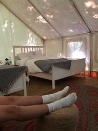 Sí, los perros pueden quedarse en este campamento (límite de 1), con un peso máximo de 23 kg por mascota.
