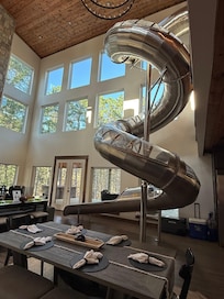 The property is beyond amazing!! They have activities for all ages. We had 5 families, 21 people, with ages ranging from 8-65 and no one was bored. There were plenty of rooms so everyone felt like they had their own space. I especially loved how every bedroom had their own bathroom. The house is so well kept and the kitchen is stocked with all the utensils and cookware needed (we have struggled with this at other properties in the past). Everyone enjoyed going down the slide and our crew really loved the movie room with the star ceiling. We spent our evenings on the swings around the fire pit making s’mores. The 3rd floor hot tub is great for looking at stars at night. We fished at the pond by the community center, which was only about a 800m walk from the cabin. We loved relaxing on the massive patio. There was nothing left to be desired! I couldn’t imagine a better cabin!