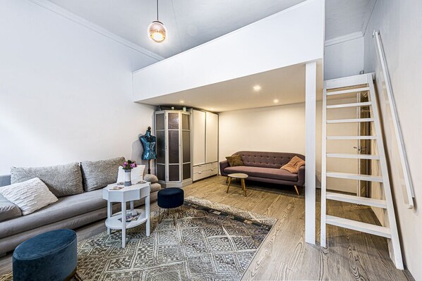 Las habitaciones de este departamento disponen de cafetera y tetera y secadora de cabello. Las habitaciones tienen patio. El mobiliario se compone de sofá cama y comedor. Todas las habitaciones disponen de Smart TV. La cocina está equipada con refrigerador, parrilla de estufa, microondas y utensilios de cocina. Los baños están equipados con regadera.