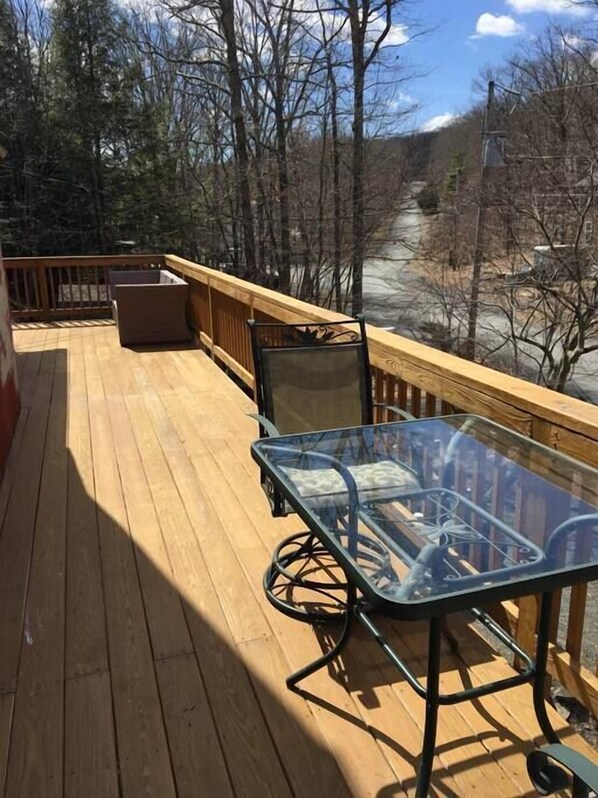 Este retiro vacacional renovado cuenta con 4 dormitorios, 3 baños completos, 1 medio baño, 2 salas de estar, cocina nueva con comedor de concepto abierto y patio con terraza envolvente equipada con parrilla de barbacoa (propano) y muebles de patio. ¡Durante su estadía, puede relajarse en un SAUNA de 3 personas mirando televisión o escuchando su lista de reproducción personal o disfrutando de algunos juegos en la mesa de billar de 8 pies! ¡Haga recuerdos en los 3 niveles de la casa, en la cubierta envolvente o alrededor del pozo de fuego para asar malvaviscos en el patio privado con cresta de montaña!