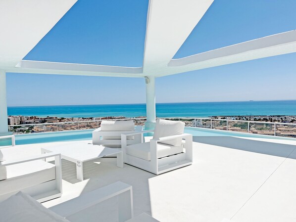 El apartamento cuenta con dos terrazas perfectas para disfrutar en familia o con amigos. Una de ellas, con increíbles vistas al mar. Además, dispone de 2 dormitorios, ambos con acceso a la segunda terraza, dos baños y una cocina abierta al salón.