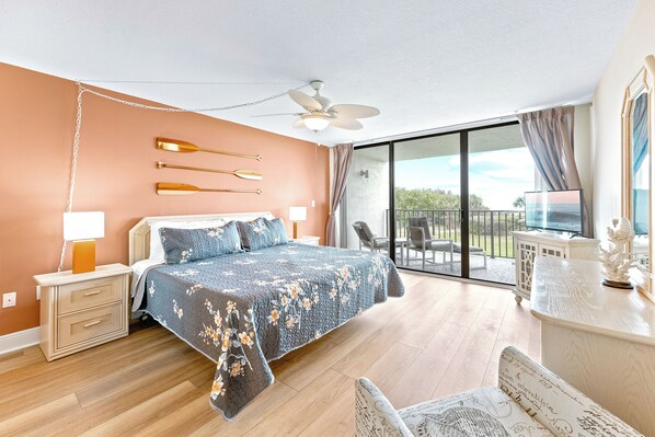 The condo had a lot of good amenities. The beds were comfortable and the large porch with the ocean view was great. It was also nice to have that view from the master bedroom. The refrigerator was spacious and it was convenient to have a washer and dryer in the unit. We loved the hot tub, heated pool, and pickle ball courts. We do have a few suggestions of things that could have been better. - kitchen supplies - a pancake turner/spatula would have been helpful, the bowls and plates were not microwaveable, the frying pans have lost their nonstick coating and even with spray food stuck to them. - It would have been nice to have a smart TV to log into our streaming services or a streaming device. The DVD player did not have a remote, so we couldn’t tell if it was smart or not. - the bed frames/headboards in the twin room were squeaky, so probably need to be tightened- there’s a safety issue with the dryer because it won’t stop when you open it - it continues to run. Additionally it would’ve been nice to be disable the buzzer (EXTREMELY LOUD) on the dryer - the exhaust fan in the master bath is installed backwards, so it sucks air in instead of exhausting it out- hanging blinds in master bedroom are hard to open and close.- things that were missing when we got there: second key to pool, measuring cups/spoons, a fourth dining room chair, remote for dvd, any detergent for the dishwasher. If these things are supplied it would move from ok to good!