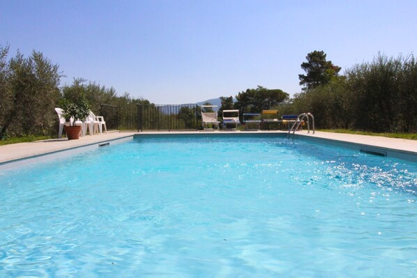 La piscina rodeada de olivos. A pocos metros de la casa, en medio de las aceitunas, hay una hermosa piscina (tama��o m. 11x5, profundidad m. 1,10-1,40), completamente vallada y para uso exclusivo de los huéspedes con una glorieta equipada. A su disposición también un gran porche equipado para comidas al aire libre, con barbacoa y horno de leña. El propietario, a petición, preparará cenas típicas de la Toscana y pizza en el horno.