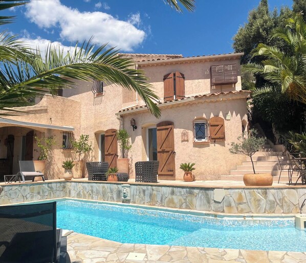Charming villa, swimming pool, exceptional sea view, close to the beach