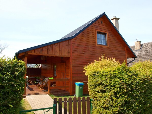 Esta cabaña, que está amueblada con muebles de madera de alta calidad, se distribuye en dos pisos y puede alojar cómodamente hasta ocho personas. En el primer piso hay dos habitaciones, cada una con tres camas individuales. Otro dormitorio con una cama doble está en la planta baja. La sala de estar y comedor de planta abierta con chimenea tiene un sofá cama y un televisor de 32 pulgadas con satélite.-TV, así como una gran mesa de comedor con sillas. La cocina está equipada con una estufa de gas, nevera-congelador, tostadora, hervidor de agua y cafetera. Hay un baño tanto en la planta baja como en el piso. Ambos baños están equipados con ducha, lavabo e inodoro. Internet WLAN también está disponible.