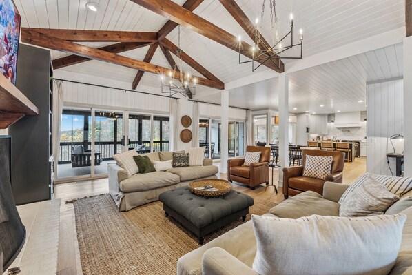 Serene mountain view home with private pool, firepit, dry sauna, & AC
