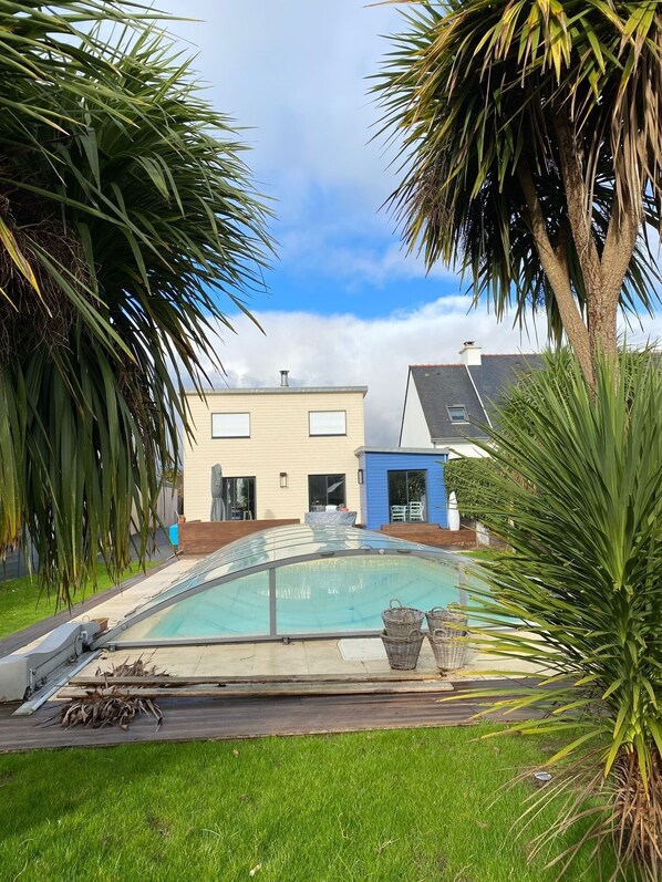 Maison idealement située entre la plage et le centre-ville. Une super piscine que l'on peut couvrir quand il fait moins beau ou le soir tout en continuant à profiter de celle-ci. nos 3 enfants ont adoré (nous aussi). La maison est bien agencée, au calme. 3 chambres et 2 salles de bains, on peut y dormir à 11. Un endroit pour ranger les velos si vous venez avec et de quoi faire des bonnes balades en partant de la maison le long de la cote. On a passé 2 supers semaines avec en plus une tres bonne meteo.