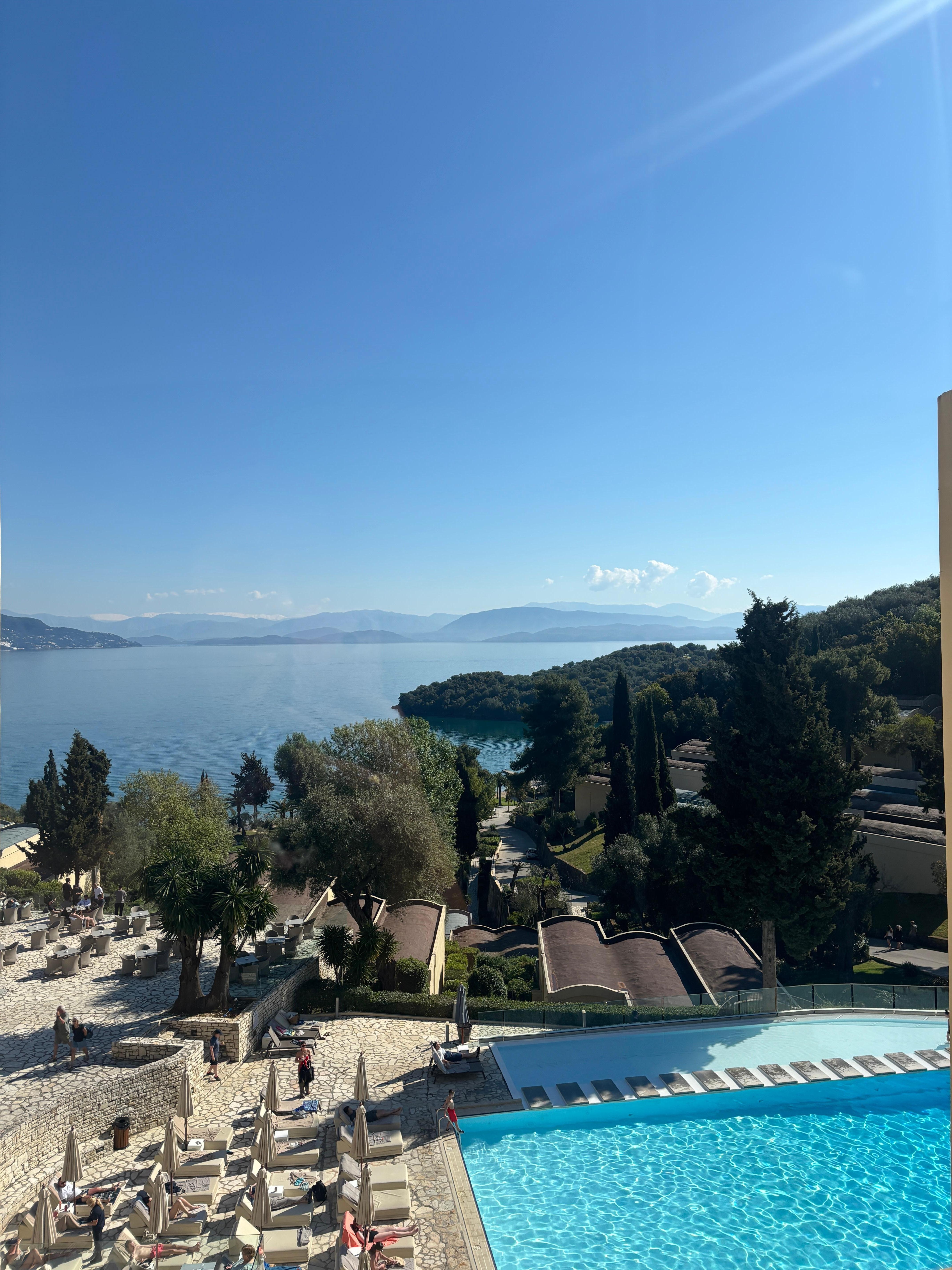 I stayed with my mum for five nights at this hotel, and it was a very relaxing stay. The staff really do go above and beyond any request, a special thank you to Angelika who was amazing during our check in and out and the waiters who were very attentive. We utilised the shuttle service into Corfu Old Town and it was very easy to organise and pretty cheap. Food and is very good at the hotel and you get a great range of choice. We used the buffet most nights and every night there were different options. We also booked the Italian restaurant which was a great experience. There are multiple bars so you don’t have to wait long and we were very happy with the cocktail selection. The property is beautiful but the rooms do seem quite old now - we didn’t spend a lot of time in the room so it wasn’t a huge problem.