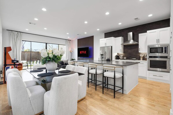 Todas las habitaciones de Spacious Dallas Stay w Queen + Games cuentan con amenidades que incluyen aire acondicionado, además de otros detalles, como oficina y comedor.