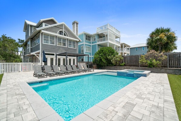 Great location on Scenic Route 98, just across the street from the beach. VERY well accessorized. By that I mean every cooking utensil one would expect plus an extensive array of cutlery and dishes. TWO large refrigerators and two large washer / dryer combos (one on first and second floors). Open air "hot tub" is not what you would expect at your health club, and there is a substantial upcharge to heat the pool, but those were small concerns to us. A HUGE plus is the company, which was IMMEDITELY response to any concerns. This is in SHARP contrast to our experience with several other agencies in the area. Sugar Palm Rentals even called us occasionally "just to see" if everything was alright. They are great, and so is this property.