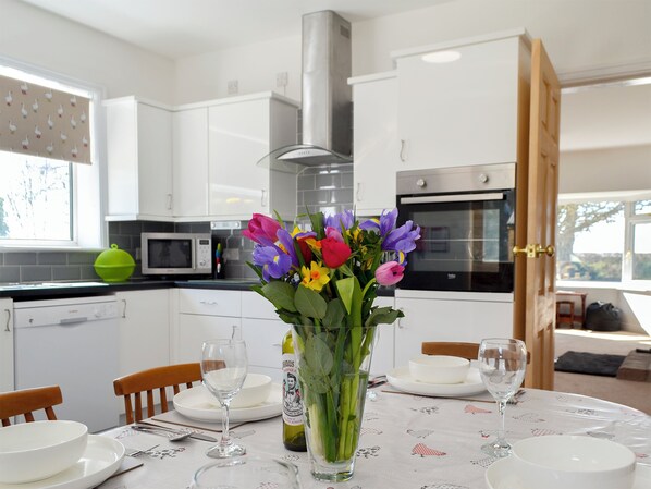 Entrando a la propiedad desde la parte trasera a través de una sala de maletero, la cocina / comedor es grande, con una cocina moderna que ofrece mucho espacio de armario. Con ventanas a ambos lados, esta habitación ofrece impresionantes vistas a campo abierto y es el lugar perfecto para socializar mientras disfruta de comidas familiares. El salón tiene una estufa de leña y sofás cómodos y profundos, uno de los cuales proporciona dormir adicional como un sofá cama para una persona. Con una habitación doble y una habitación doble con cremallera y enlace, esta propiedad ofrece un alojamiento flexible tanto si viaja en familia como con amigos. En el exterior hay jardines en la parte delantera y trasera, con la parte frontal completamente cerrada para permitir que los perros corran libres y disfruten del aire fresco. Con las vistas que ofrece esta propiedad, una agradable velada en el patio mientras disfruta de una comida al aire libre y observa cómo los animales pastan en los campos de los alrededores.
