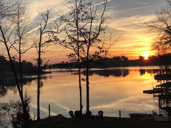 Lake Side Log Cabin, Private Dock, Movie Sunrise Views!
