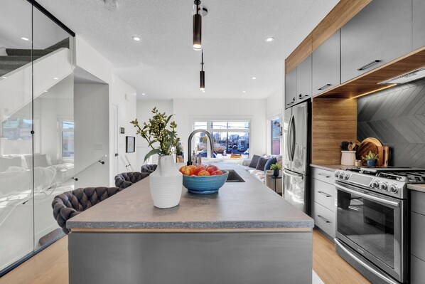 Esta casa de vacaciones para toda la familia de Edmonton se encuentra en un río, a menos de 2 km (1 mi) de MacEwan University y Estadio Rogers Place. Universidad de Alberta se encuentra a 4.1 km (2.5 mi). Estación de MacEwan se encuentra a 20 min caminando, y Estación de metro de Corona se encuentra a 24 min a pie.