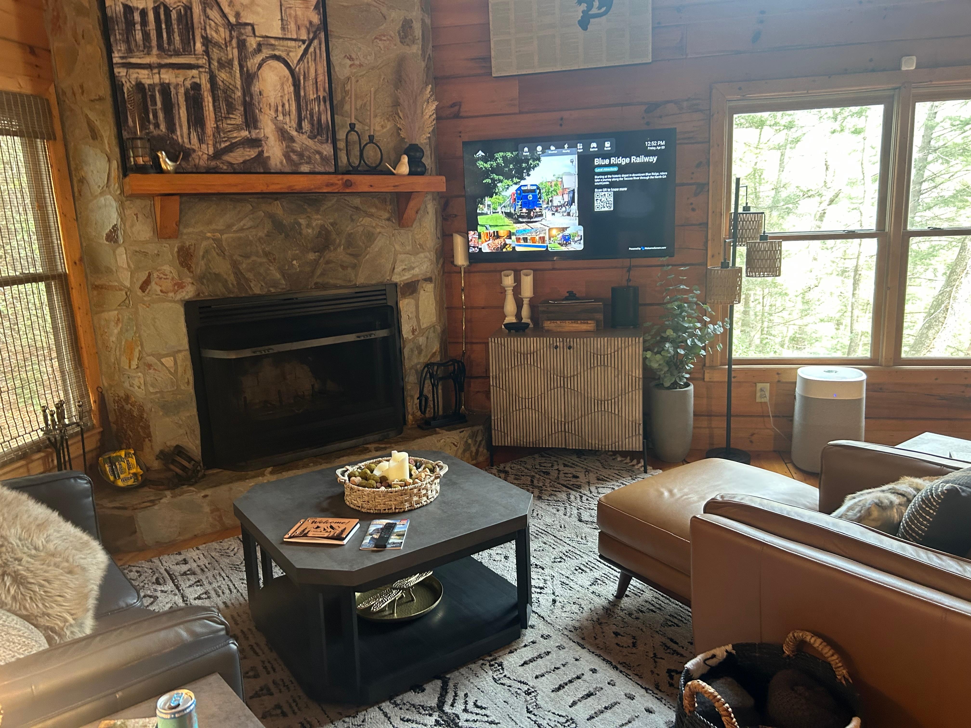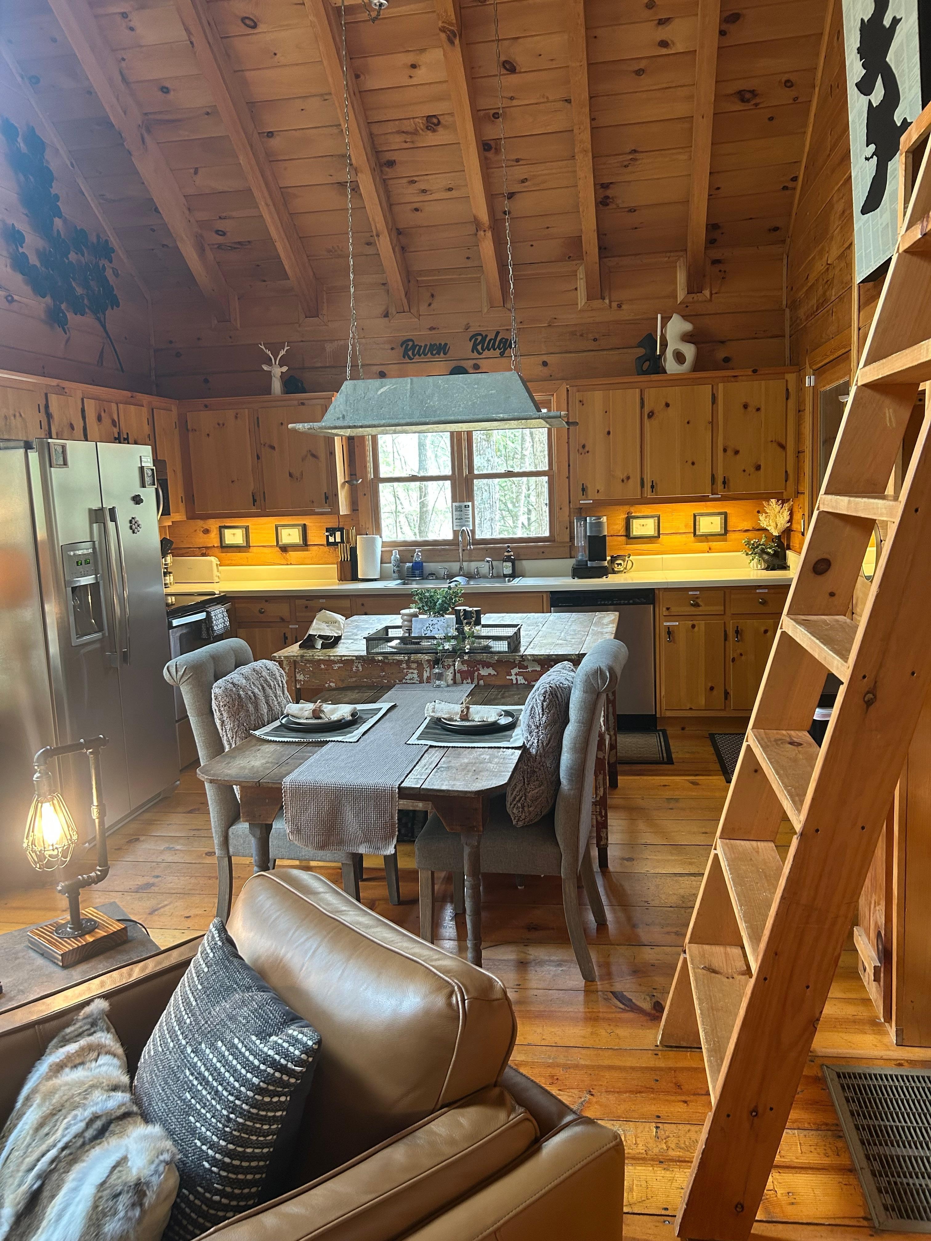 The cabin was perfectly appointed with decor and amenities, with instructions for everything on the TV welcome screen and labels on the kitchen drawers and cabinets. Everything was provided that was needed for a comfortable stay. The back deck view was serene and peaceful with plenty of birds singing in the morning and the sound of the creek in the background. The only down side, if any, was the road to the cabin which is about 3 miles off of the main road into town. A vehicle with all wheel drive or 4 wheel drive would definitely be best!