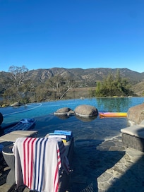 Casa de vacaciones en un lago con alberca al aire libre y tina de hidromasaje
