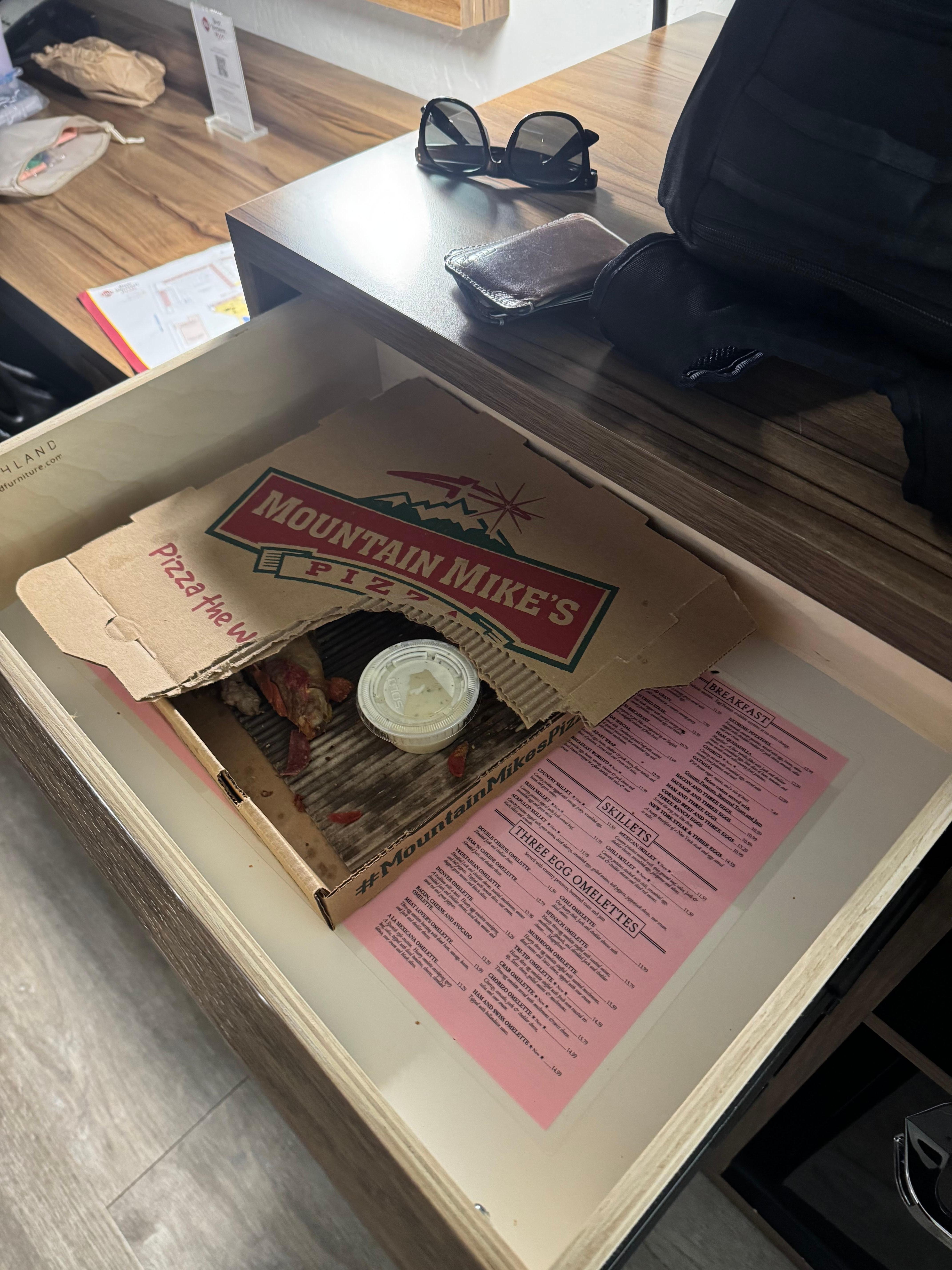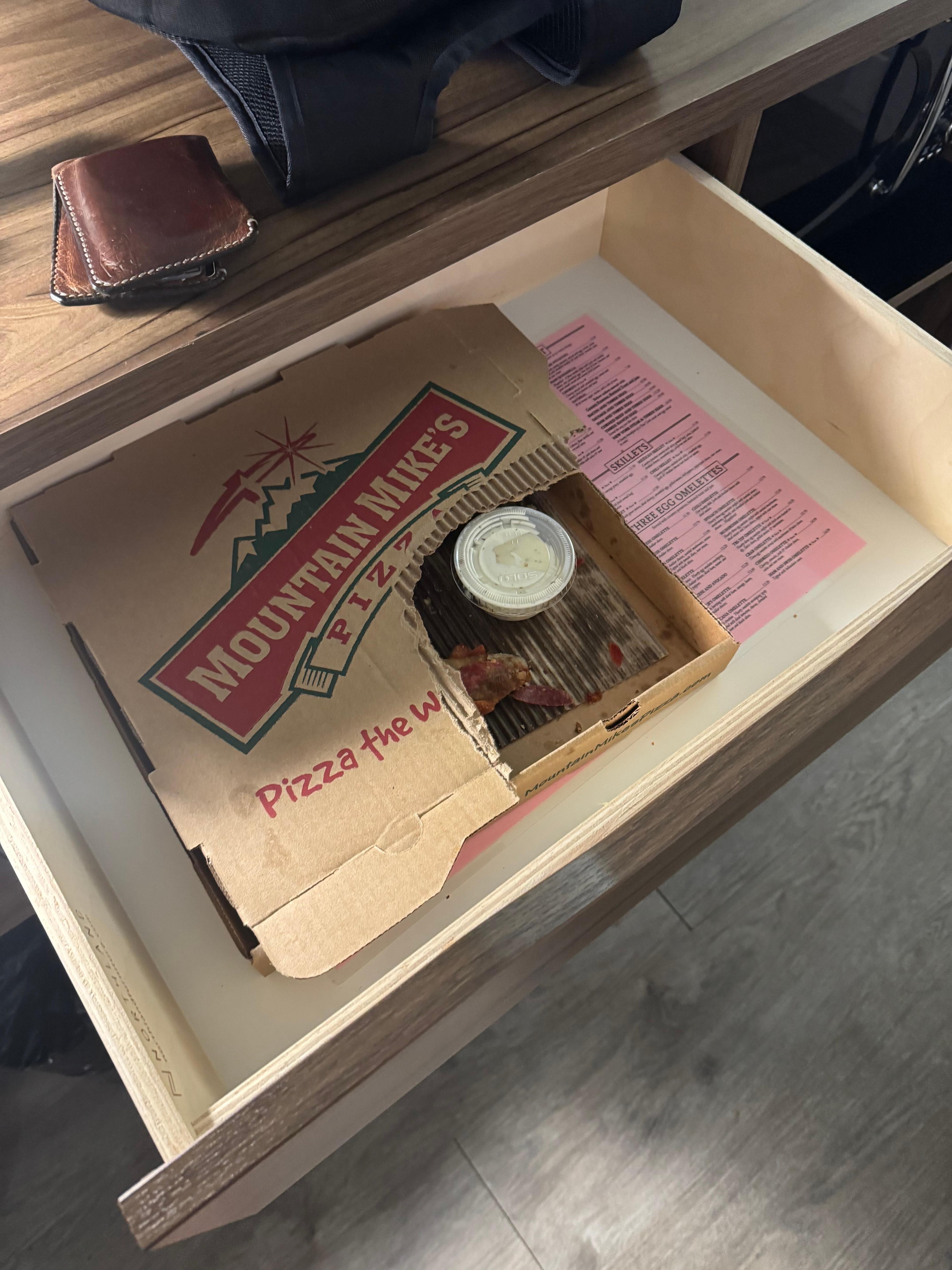 We arrived after check in time and it still took an additional 2 hours to get our room. When we started to unpack our bags we found a half eaten pizza in one of the drawers. The front desk staff didn’t seem too concerned about it and said they would let housekeeping know. When we asked for additional toiletries, the housekeeping staff was very rude. Very disappointing experience.
