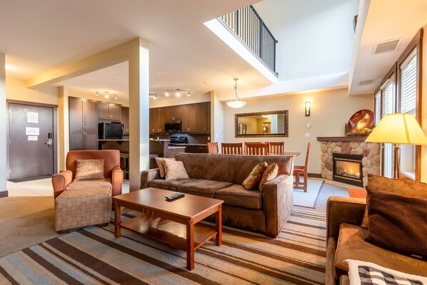 alojamientos condominio más nuevo y más esperado de Fernie idealmente situado a sólo cinco minutos de la base de la colina de esquí y un corto paseo por la ciudad. Una enorme 3 dormitorio y cama de matrimonio en el loft. Una amplia sala de estar y cocina completa será más que suficiente espacio para el grupo de 10 años o menos. Esta suite de lujo con apartamentos está acentuado por instalaciones, incluyendo una piscina cubierta climatizada (45 pies de largo!), jacuzzi al aire libre, chimenea a gas, gimnasio, aire acondicionado y estacionamiento subterráneo con calefacción. Todas sus necesidades en una ubicación increíble.