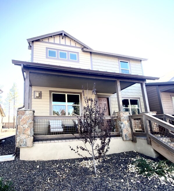 We stayed at this property for 5 weeks — part vacation and part work. The house is set up perfectly for remote work with strong internet. We had our 2 dogs with us and there are dog parks everywhere, including right behind the house. The location is close to downtown, and easy access to Grand Canyon, Sedona, Cottonwood, and Page. The view from the front porch isn’t so bad either. Highly recommend this property.