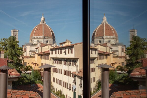 A través de la ventana de la azotea puede disfrutar de la vista del Duomo y del campanario de Giotto.