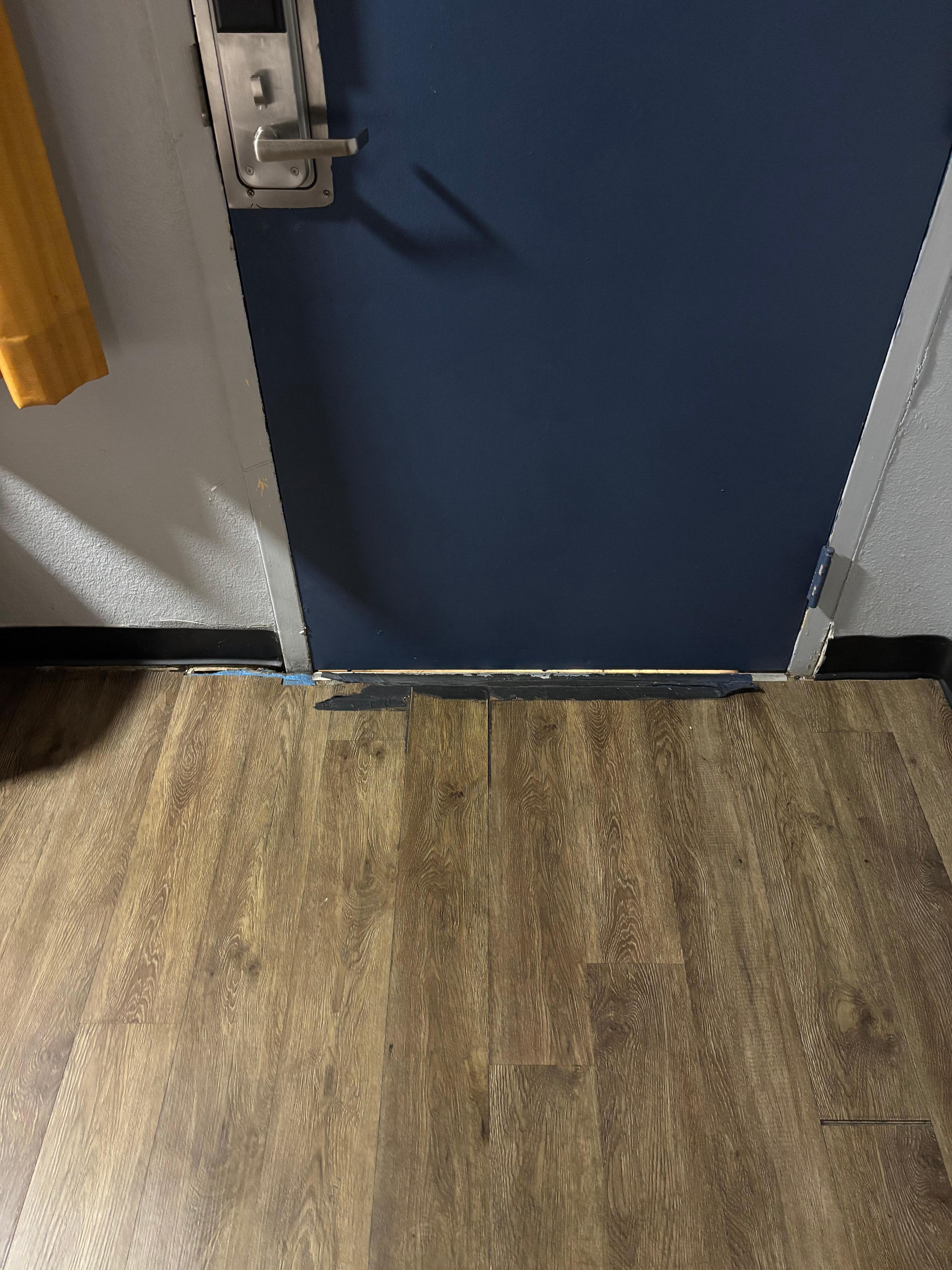 When I booked, I understood this was a motel and kept my expectations low, but the condition of the room was unacceptable and looked NOTHING like the photos on the listing. The floor was cracking by the door and several tiles were missing, leaving a large gap that could easily be tripped on. The rubber baseboards around the room were peeling off, and there were numerous stains on the walls that appeared to be bodily fluids.