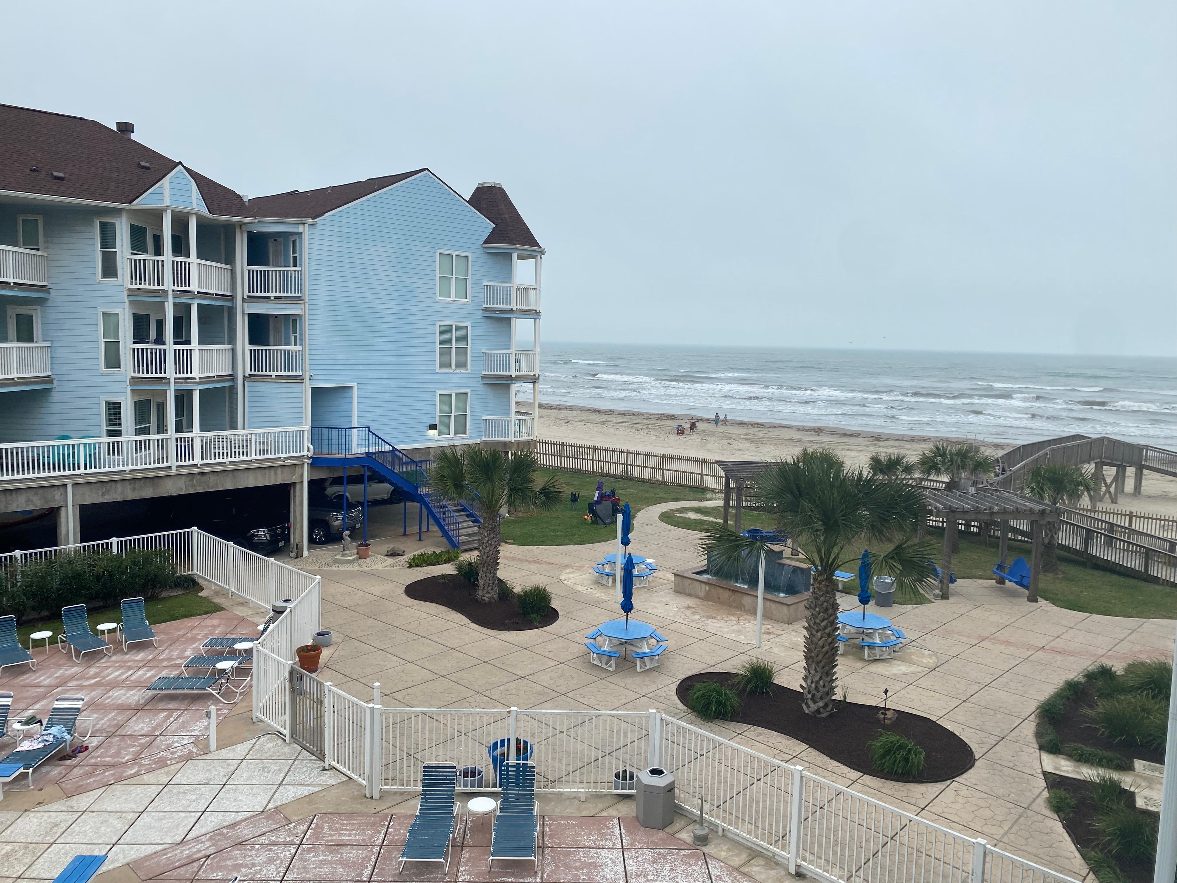 Este condominio forma parte de la prestigiosa comunidad costera frente al mar, que se encuentra justo en la popular playa del oeste de las islas Galveston. El complejo tiene un tema tropical con hermosos paisajes, con palmeras ondulantes y una piscina climatizada, dos jacuzzis, columpios junto a la playa, barbacoas junto al mar y un picnic y una plataforma de observación. Además, hay una gran variedad de restaurantes y tiendas locales a poca distancia en automóvil.