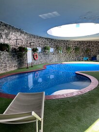 Sí, la propiedad cuenta con alberca techada. Se puede entrar a la alberca de 09:00 a 20:00.