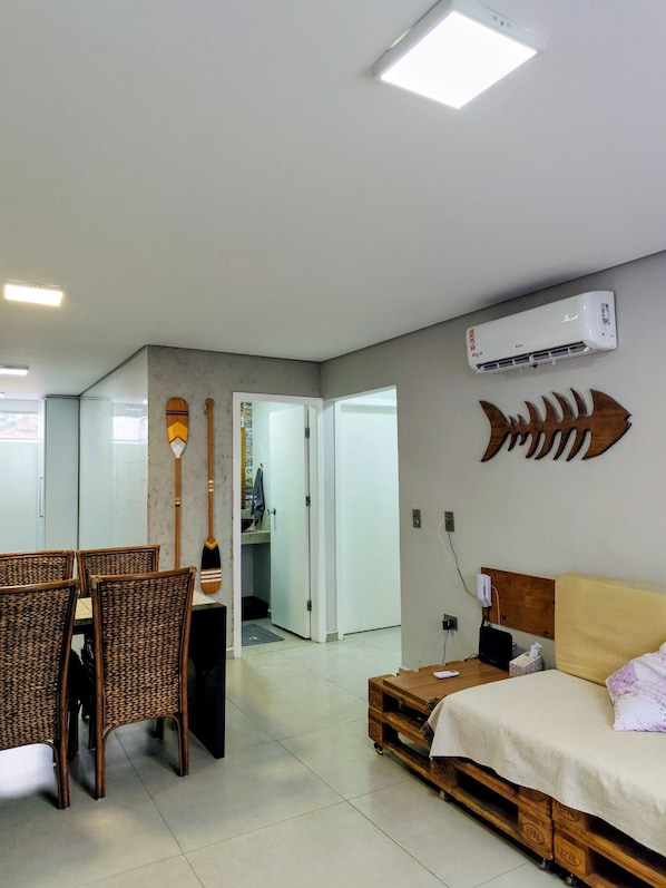 Este departamento en Guarujá ofrece acceso a wifi gratis con una velocidad de 500+ Mbps (ideal para 6+ personas o 10+ dispositivos). Todas las habitaciones disponen de Smart TV.