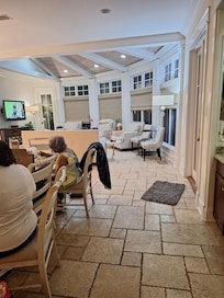 Bath towels were very nice, furniture and beds good too. Main floor air conditioning didn't work well. Stuck at 75, would run 5 minutes then stop. Rep came twice, it got better, still sounded bad at unit. Upstairs closet door off, leaning against wall, fall hazard at night. Master TV didn't work, no instructions on how to get it working. No instructions on how to lock main door without calling manager. Broken outdoor furniture in bushes, decking needs resurfacing. Daily parking passes for 7 weren't valid overnight. No info anywhere that said daily doesn't mean 24 hrs, only while daylight. Gate sign says 40 for entire stay parking passes, you charge 50. After paying premium rental rates and seeing thousands of empty parking places, this ridiculous HOA policy and problems with this property will likely prevent us from renting at Beach Club again. No relief from property managers on problems, just a runaround from gate to VRBO to property manager to HOA.