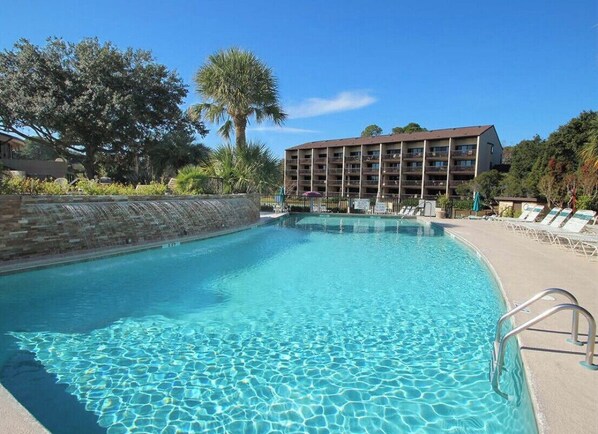 Las piscinas están justo enfrente del condominio y la playa a un minuto a pie con acceso privado para todos los huéspedes de The Island Club. El condominio está en el primer piso en la construcción de Waterway. Este condominio acaba de ser renovado con nuevos electrodomésticos de acero inoxidable, nuevas encimeras de Grantie, pisos nuevos de baldosas (azulejos que parecen de madera dura), muebles nuevos, pintura nueva y tocadores nuevos y actualizados en los baños. Hay un NUEVO televisor inteligente de 55 pulgadas en la sala de estar y un televisor más pequeño en el dormitorio principal. Cama King en el dormitorio principal, reina y doble en el segundo dormitorio, sofá cama en el salón. Nuevos colchones de primera línea (los mismos que utilizan los hoteles Marriott). Nueva mesa de comedor asientos 6-8 con espacio para más. Wi-fi, tenis, baloncesto, alquiler de bicicletas, programa infantil en verano. La ubicación es genial para la mayoría de todo en la isla.