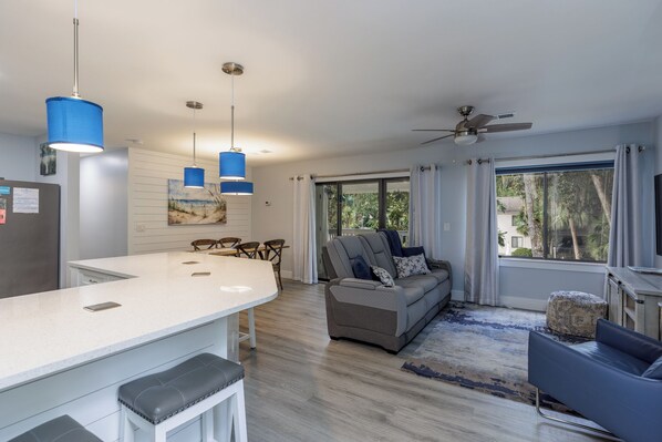 Esta villa en Hilton Head ofrece acceso a wifi gratis con una velocidad de 100+ Mbps (ideal para 1 o 2 personas o hasta 6 dispositivos). Todas las habitaciones disponen de Smart TV.