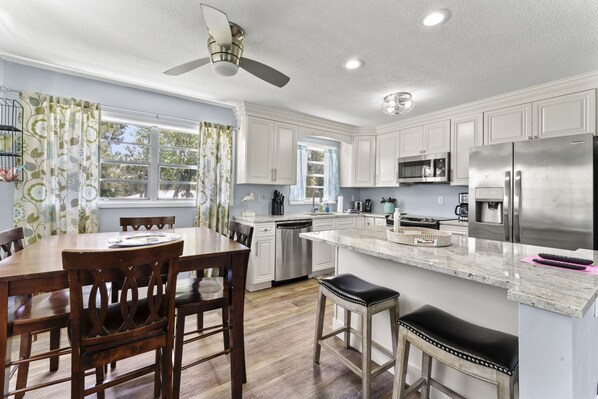 We had to go buy oil for using frying pan, and no soap provided for showers. Basement really didn’t provide anything, really would be great with ping pong table or something to make the space usable. Not connected to main body of water—I thought we’d be able to use kayaks to get to bigger body of water but it’s just swampy marsh. Very mucky water; really didn’t even want to use kayaks. I paid more for this location thinking we would use kayaks in the water, but you wouldn’t want to do that here. Still neat to see the crab in the water—he was big!Definitely recommend Homassass Springs —great value!! Don’t recommend Three Sister Springs—20 per person just to walk trail and see pretty pond with manatees, but same thing at Homosassa Springs with so much more to see for about 1/3 of the price and only 30 minutes apart.