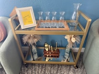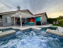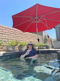This house is amazing and what you see in the photos is what you get--full on Palm Springs vibe!! The house was exceptionally clean, towels were available and the bathrooms also had shampoo, conditioner, and body wash available. We had everything we needed and appreciated that everything was labeled...cabinets, remotes, switches, plugs. The kitchen was fully stocked with dishes, pans, coffee maker etc and there were some basic spices and coffee available as well. There's also a mimosa cart ready for you to use! Once you are close to your arrival date you are sent an online instruction guide on how to use everything in and out of the house, which we found extremely useful (also very well done). There is an umbrella you can setup in the shallow portion of the pool for some shade. We brought floats but I saw some in an outdoor bin. In the evening you can adjust the pool lighting colors to your liking. The patio has outdoor fans and hanging lights setup so it was comfortable on the patio in the evenings. We were there the first week of June so we didn't need to heat the pool, just the hot tub. AC worked perfectly in the house. We've already booked out next trip! Highly recommend!!