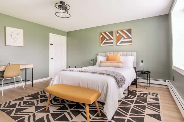 This 2 BR apt. is just as the pictures show - immaculate, well-appointed, and comfortable. Check-in is a snap - no contact. Parking is ample and easy. The apartment, which is down a flight of stairs, is bright and airy; although it is a basement apt, there are ample windows and light. Beds are comfy. Towels are luxurious. The appliances and decor are very new and everything works perfectly. Each BR has its own air conditioner. The outdoor space features two distinct and private areas, each with its own fire pit, wood pile, picnic table, and chairs. We did not have good enough weather or we would have made s'mores from the smores kit that was left for us : )