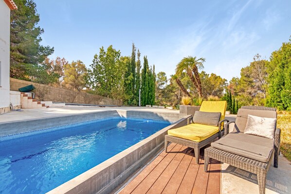 Esta propiedad cuenta con una zona exterior privada con piscina, jardín, terraza, barbacoa y ducha exterior. Hay aire acondicionado. La propiedad está ubicada a poca distancia de la playa y hay una pista de tenis a 15 minutos a pie. Hay 4 plazas de parking disponibles en la propiedad. No se permiten mascotas ni fumar en la propiedad. También dispone de una zona de aparcamiento para motos y bicicletas. La electricidad de esta propiedad se genera en parte mediante paneles solares. Se ruega a los huéspedes que respeten las horas de silencio.