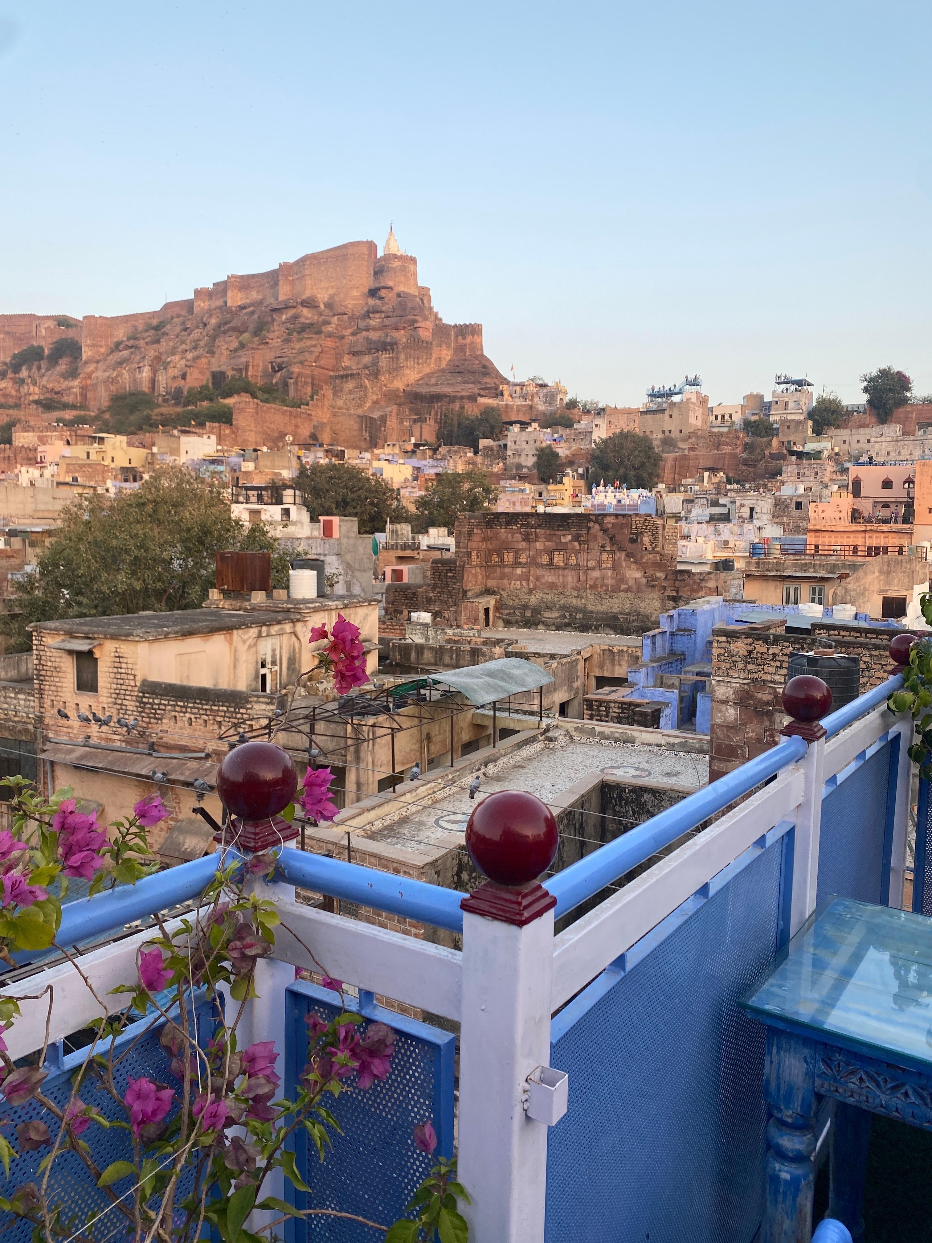 Note you have to catch a tuk tuk to this hotel as the streets in old town are too narrow for cars. Our driver didn’t know it or English. But the Raj Mandir hotel organised our return taxi and tuk tuk for cheaper and it went really smoothly. This hotel is situated on the edge of the blue part.
