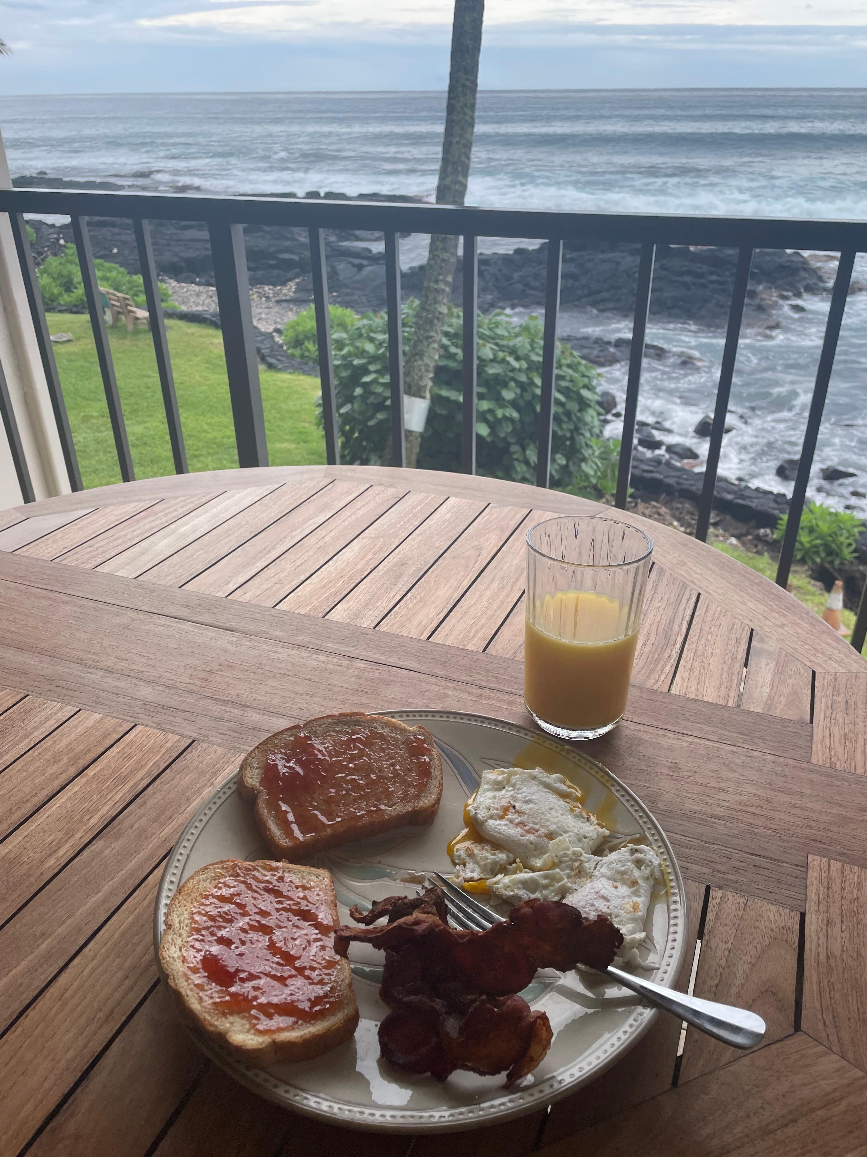¡Este lujoso condominio de estudio es el lugar perfecto para pasar unas vacaciones lujosas y relajantes justo al borde del océano! Literalmente, a 20 pies del océano, no se puede superar la vista desde el lanai o dentro de la unidad. . . Perfecto para descansar, comer, leer o cocinar maravillosas comidas en la cocina gourmet de tamaño completo. ¡Probablemente no querrás dejar el condominio! (Pero deberías) Todas las comodidades del hogar (y quizás incluso más), pero estás en Hawai, disfrutando del fabuloso clima, vistas, olores y sonidos, con todo lujo. Hermosos pisos de piedra a lo largo. El granito de gama alta, los paneles de teca en toda su superficie, el techo de bambú y los gabinetes de teca / bambú crean un interior elegante. Las puertas corredizas de vidrio se abren completamente para permitir que el lanai se convierta en parte del interior. .¡fabuloso! El condominio es una unidad final en el segundo piso del deseable extremo norte del edificio frente al mar, por lo que no puedes acercarte más al océano que esta unidad sin mojarte. Este condominio frente al mar no solo cuenta con vistas de primera clase, sino que también tiene una excelente proximidad a la ciudad de Kona y todas las actividades.