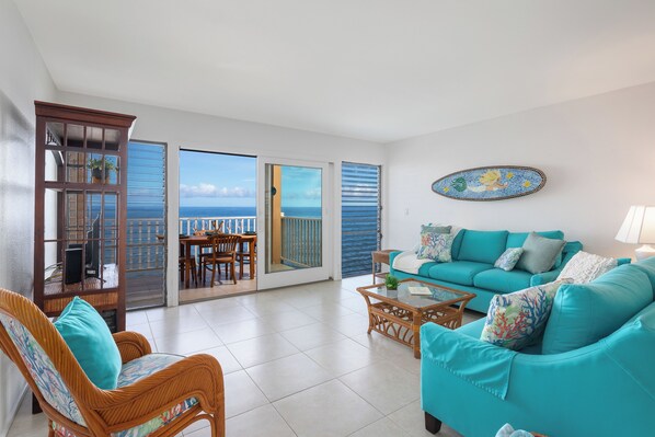 Desde el condominio puedes ver a los delfines jugando, las ballenas migrando y los peces saltando. Para aquellos que buscan más aventura ... puedes nadar y bucear desde las rocas vistas desde el lanai.